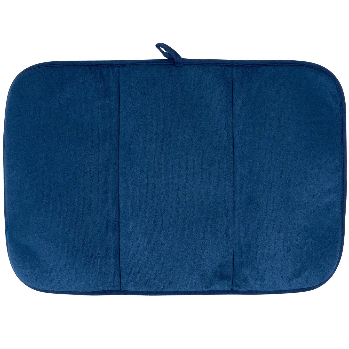 Drying mat includes a hanger at the top to display design or to air dry when not in use. Drying mat is conveniently machine-washable for easy cleaning and folds up for easy storage.
